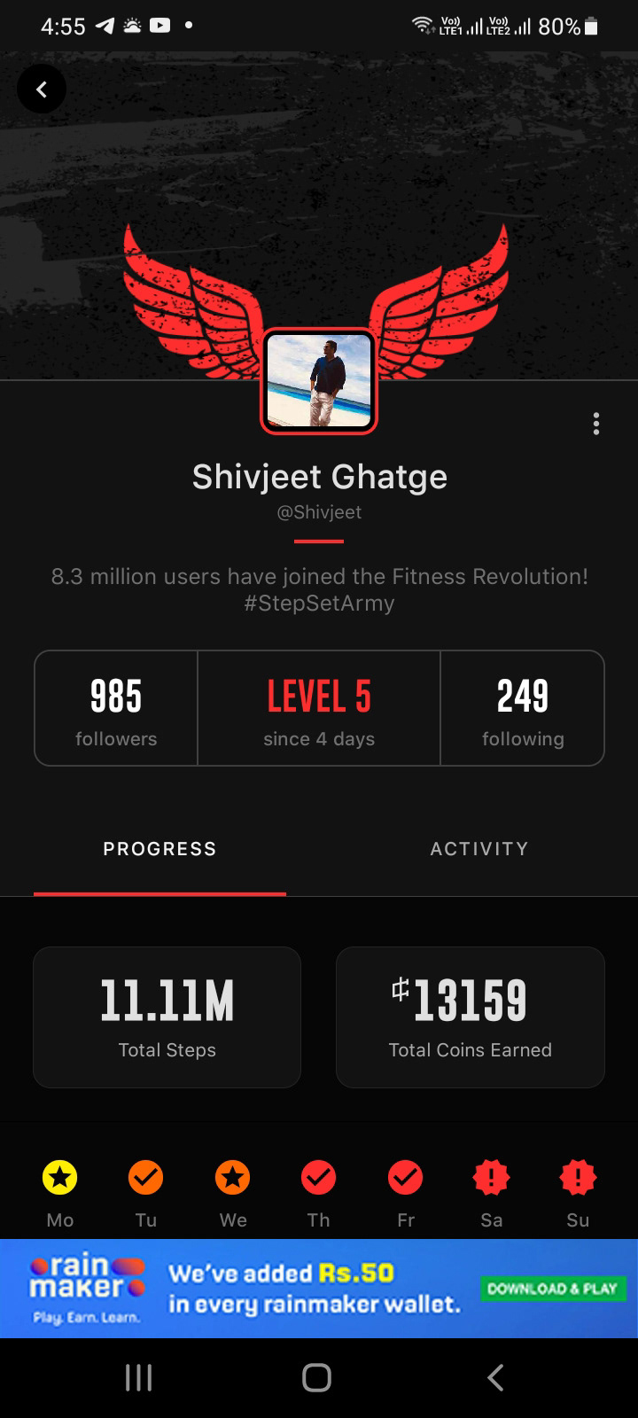At StepSetGo, I initially worked as a Graphic Designer and was later promoted to Design Manager, tackling challenges in user engagement and leveraging Zaheer Khan's influence. I developed intuitive UI/UX designs, high-impact marketing materials, and bespoke corporate wellness programs, leading to increased app downloads, daily active users, and expanded B2B credibility. Additionally, I spearheaded the creative direction for corporate events, enhancing StepSetGo's visibility and solidifying its position in the fitness industry.